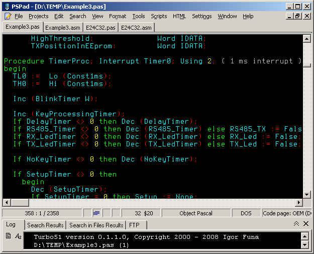 Turbo51 est un compilateur Pascal gratuit pour la famille de micro-contrôleurs 8051. Il fonctionne uniquement en ligne de commande dans une console Windows.