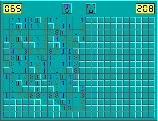 Jeu inspiré du célèbre démineur de Windows, sous MS-DOS en mode graphique, avec programmation d'un timer et détournement des interruptions.