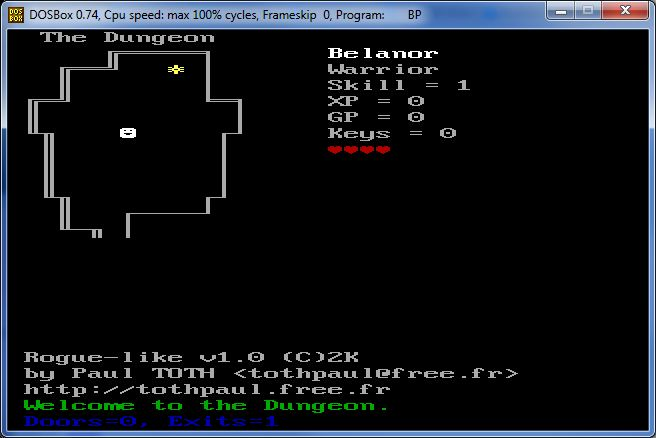 Petit programme DOS d'exploration de donjons réalisé en 2000 par Paul TOTH et mis en libre télécharger sur developpez.com en 2012