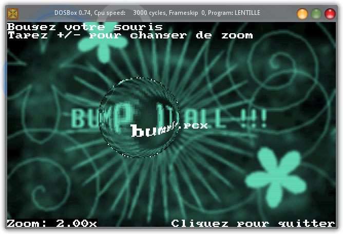 Crée l'effet d'une lentille (zoom). Contrôlé à la souris.