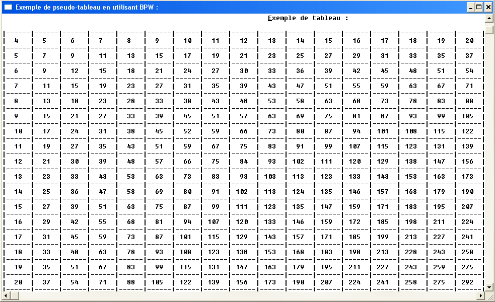 Pseudo-Tableau sous Borland Pascal pour Windows