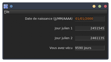 Application permettant de savoir combien de jours on a vécu.